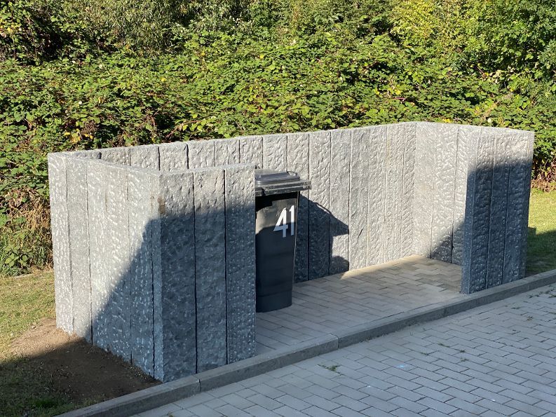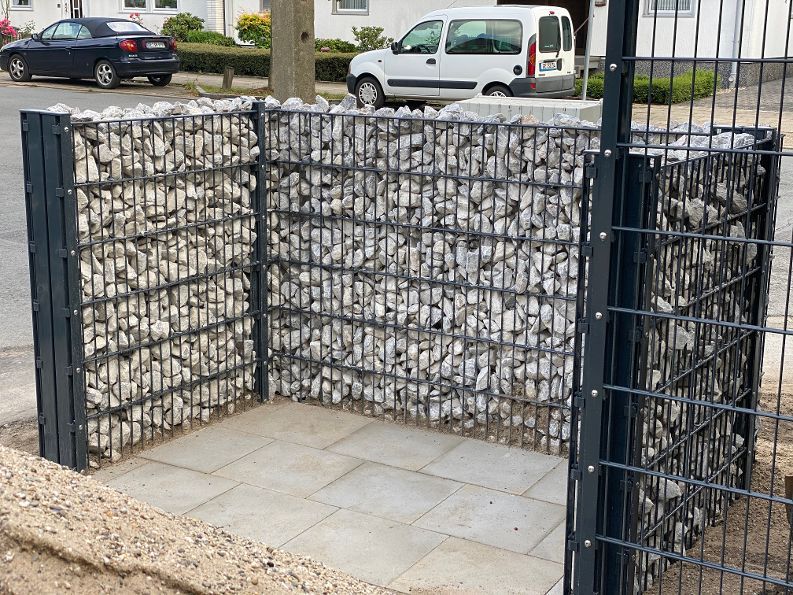 Es gibt viele Möglichkeiten, die Behälter sauber dastehen zu lassen. Die Mülltonnenumrandung gibt es in Holz, Kunststoff oder als Gabione aus Natursteine.